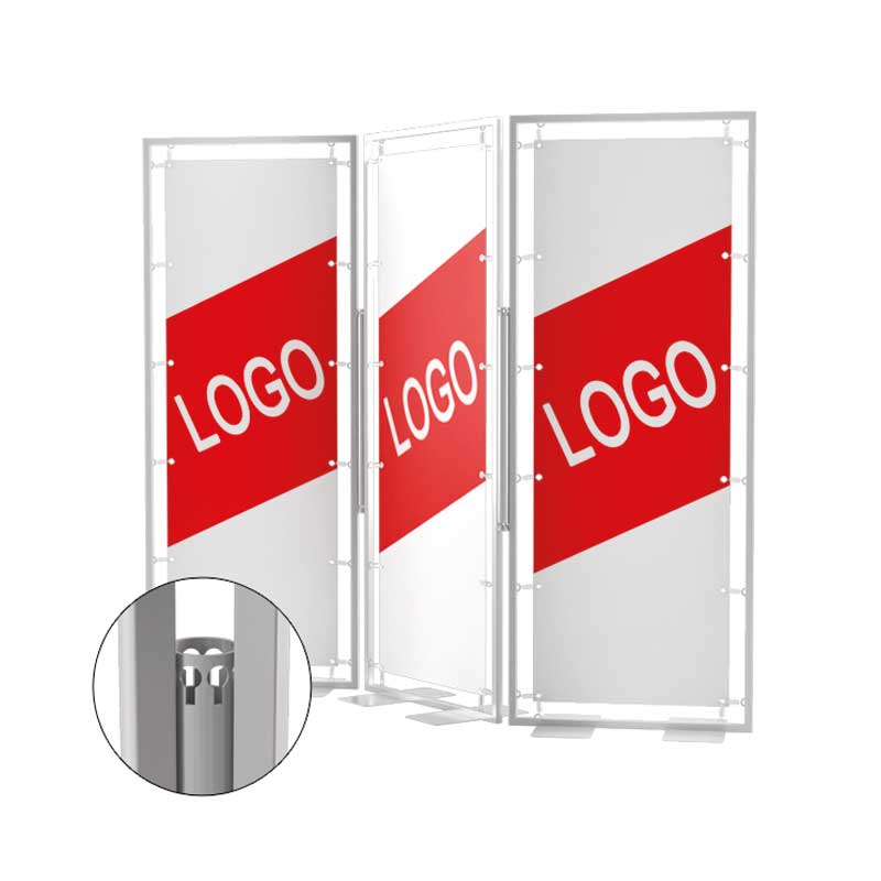Präsentationswand. Diese Art von Präsentationswänden wird mit Rohrverbinder in Kombination mit Metallprofilen hergestellt. Mit diesem modularen System können Sie jedes gewünschte Modell kreieren, das Sie möchten. Diese “Messerahmen” von Europe Display Systems sind erhältlich in allen möglichen Formaten, Abmessungen und Ausführungen. Sie finden hier lediglich eine Anzahl von Beispielen.