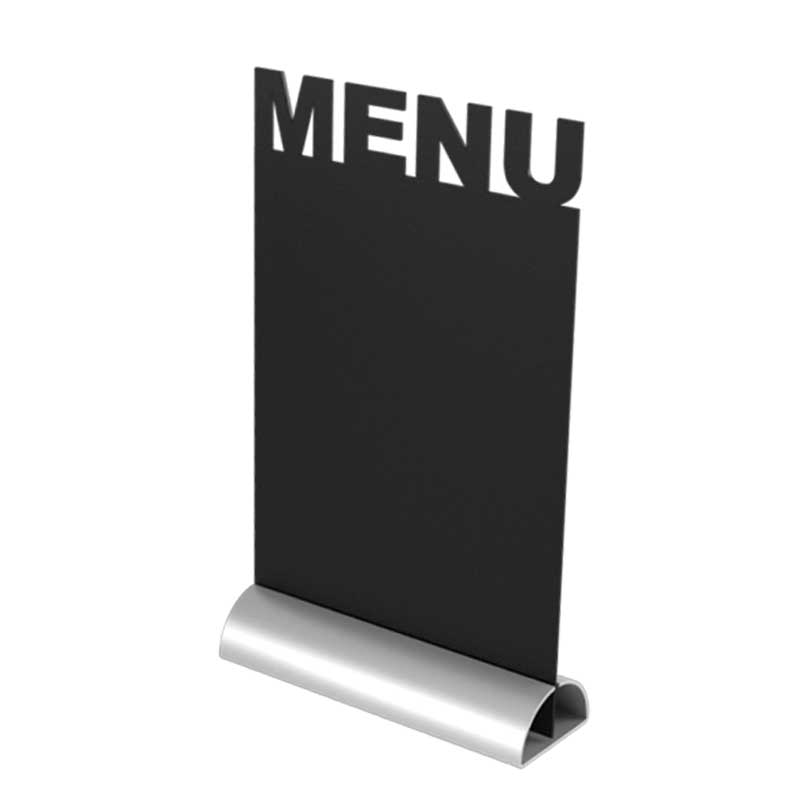 Der Kreidetafel Aufsteller Menü_1 ist die ideale Lösung für stilvolle Menüpräsentationen in Gastronomie, Hotellerie oder auf Events. Die beidseitig beschriftbare Tischtafel mit dem Schriftzug „Menu“ ermöglicht eine flexible und schnelle Darstellung Ihrer Tagesangebote. Dank austauschbarer Tafeleinsätze bleibt Ihr Auftritt stets aktuell und professionell.