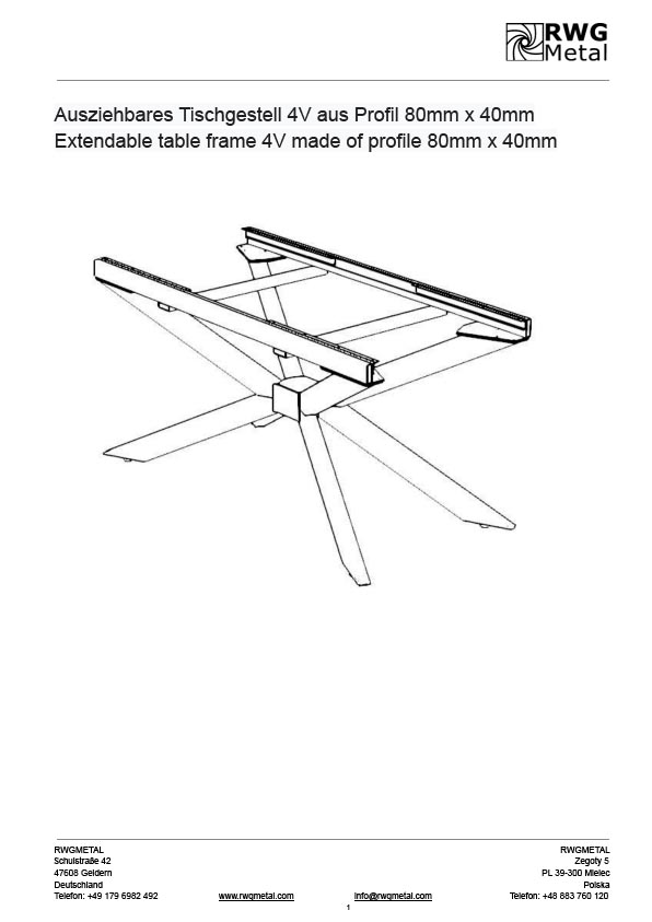 Weitere Eigenschaften von 4V Tischgestell von RWGMETAL