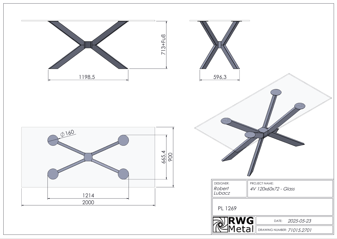 Weitere Eigenschaften des 4V Tischgestells von RWGMETAL