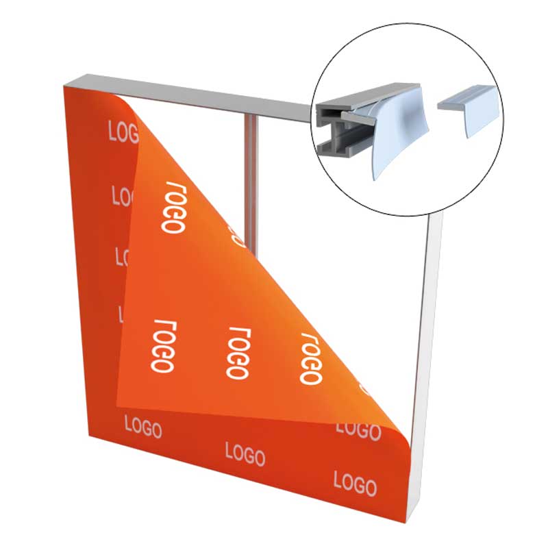 Ein besonders schmaler Textilspannrahmen zur Wandmontage, ideal für dekorative Anwendungen in Büros, auf Messen oder im privaten Bereich. Der Rahmen ermöglicht einen schnellen Motivwechsel durch die praktische Flachkeder-Technik (Gummilippe). Die Montage erfolgt direkt durch Verschraubung an der Wand – stabil und unkompliziert.